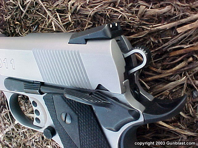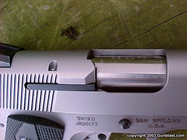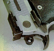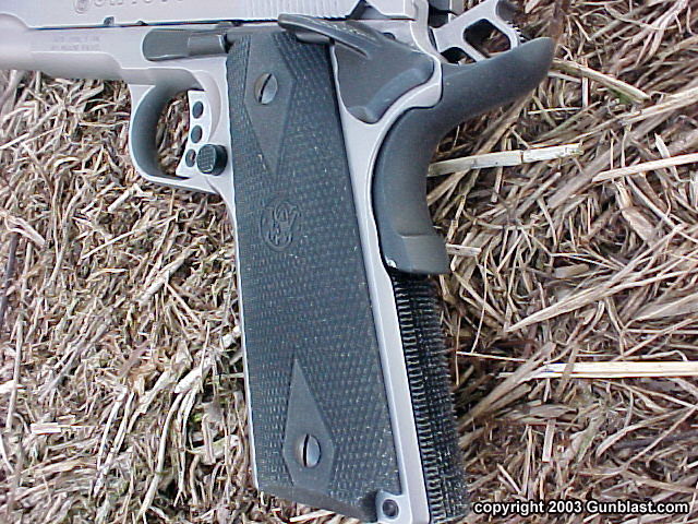SW1911改用较传统的平行线式防滑纹,不再用原来的鱼鳞纹,不知道是为了降低加工成本,还是因为鱼鳞纹的效果未必那么好,只是漂亮而矣。