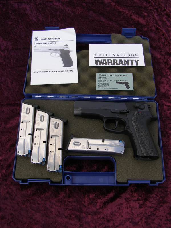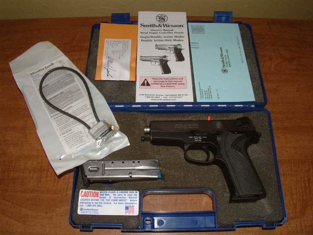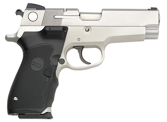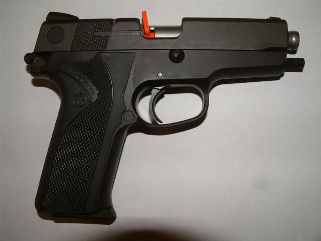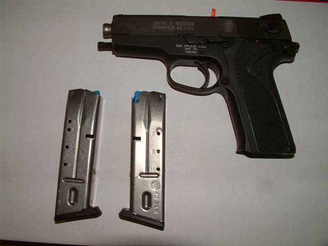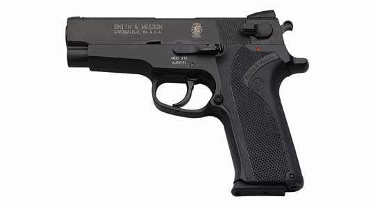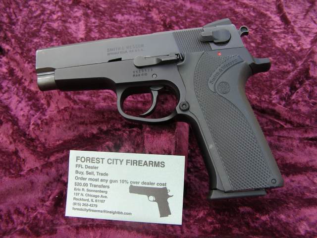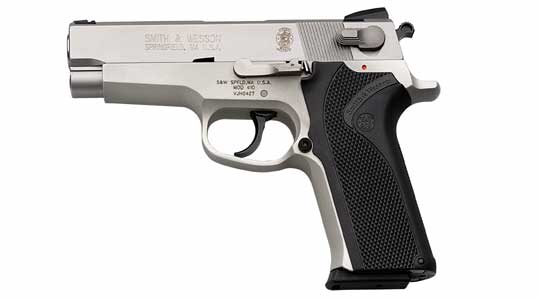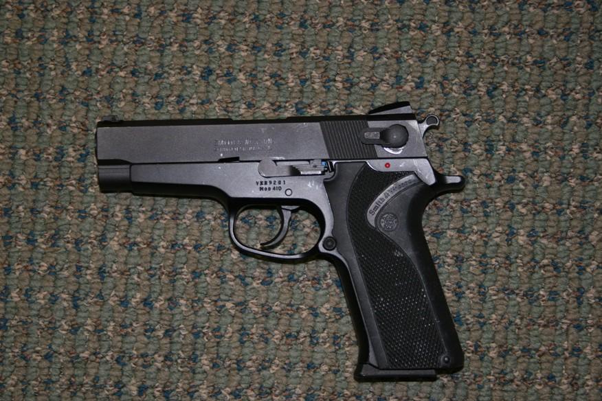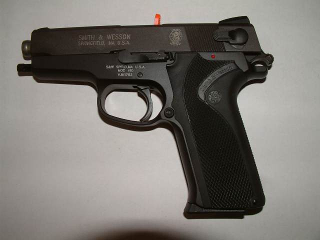从只有3位数的数字编号上看,史密斯-韦森410型是属于第2代的S&W金属底把半自动手枪,按口径划分,又属于发射.40 S&W弹的史密斯-韦森4000系列。410型在1995年开始生产和销售,略迟于411型(其实411是410的原型)。4英寸枪管,铝合金底把,开始推出时只有烤蓝处理,但现在也有全不锈钢型的410S型。该枪采用10发双排弹匣。