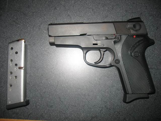 史密斯-韦森900系列是属于第二代S&W半自动手枪,第一个型号是1995年推出的是中型尺寸的909型,9mm口径,采用9发单排弹匣,但在1997年就已经停产,接着推出的是908型,这是909型的紧凑型,枪管长3.5英寸,弹匣容量也减少到8发。同一系列的还有910型和915型。