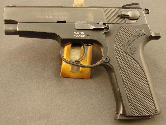 史密斯-韦森910型手枪是属于第2代的全尺寸手枪,与908型同时推出,除了枪管较长,握把也稍长,因此弹匣容量为10发。