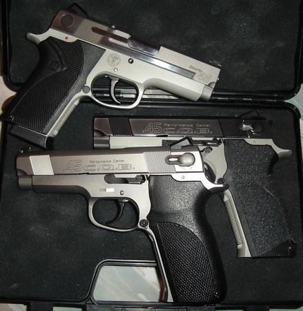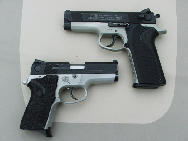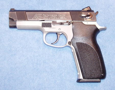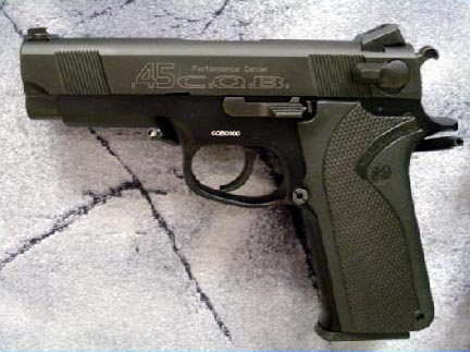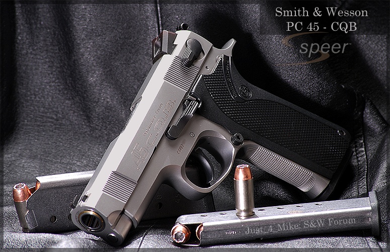 .45 C.Q.B.型是由S&W公司执行中心(Performance Center)在原有的第3代45xx系列标准尺寸手枪的基础上换上比赛级枪管及其他部件制成。在套筒上有很大的“.45 C.Q.B.”标记。