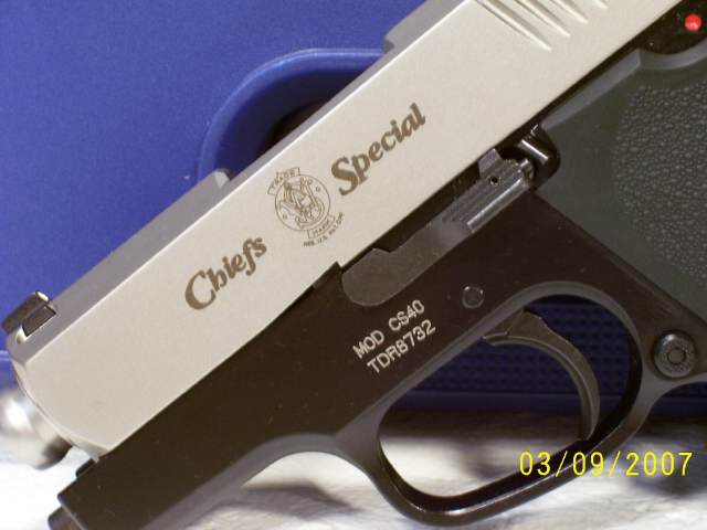 史密斯-韦森CS-40型手枪的推出时间稍迟于CS-9型,而且产量较少,现在的史密斯-韦森官方网站的产品列表上已经没有CS-40,可能已经停产。CS-40采用单/双动扳机,此外还有纯双动型的CS-40D。