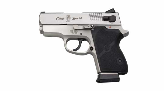 史密斯-韦森CS-45型手枪是属于史密斯-韦森的第3代金属底把半自动手枪之一,全称是Chief Special 45,该枪在1996年推出,是S&W Chief Special系列袖珍手枪的第一种型号。CS-45采用单/双动扳机,此外还有纯双动型的CS-45D。该枪全长6.5英寸,枪管长3.25英寸,重652克,弹匣容量6发。