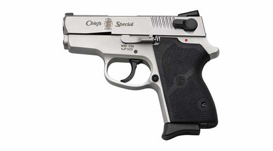虽然名称是由两个字母和一个数字组成,但史密斯-韦森CS-9型手枪是属于史密斯-韦森的第3代金属底把半自动手枪之一,却沿用了与.38口径的“长官专用”型(Smith & Wesson Chief's Special )转轮手枪的名称,并加上口径的名称,全称为Chief Special 9。该枪在1998年由S&W的定制枪部门“执行中心”(Performance Center)设计和生产,是一种袖珍型手枪,或称之为口袋枪。比CS-9型更早推出的是CS-45型,而后推出的是CS-40型。此外还有DAO型的CS-9D、CS-40D和CS-45D。由于枪很小巧,很容易隐藏,所以这些Chief Special系列手枪被一些执法人员或平民用作隐蔽携带的后备武器。