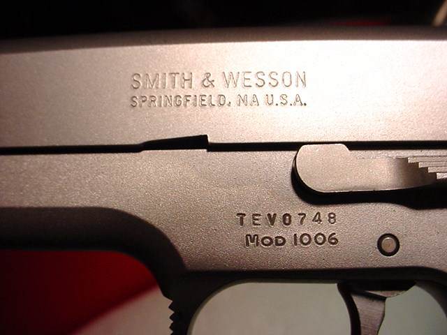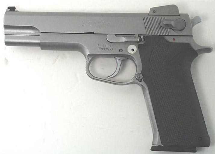 史密斯-韦森1006型手枪是10mm口径的1000系列中的第二型,在1990年推出,是第一型1076-FBI型的改进型,但在1992年就停产了,该系列中还有1026型、1046型、1066型和1086型,产量都很少。该枪采用不锈钢套筒和底把,9发双排弹匣,5英寸枪管,重1.19kg。