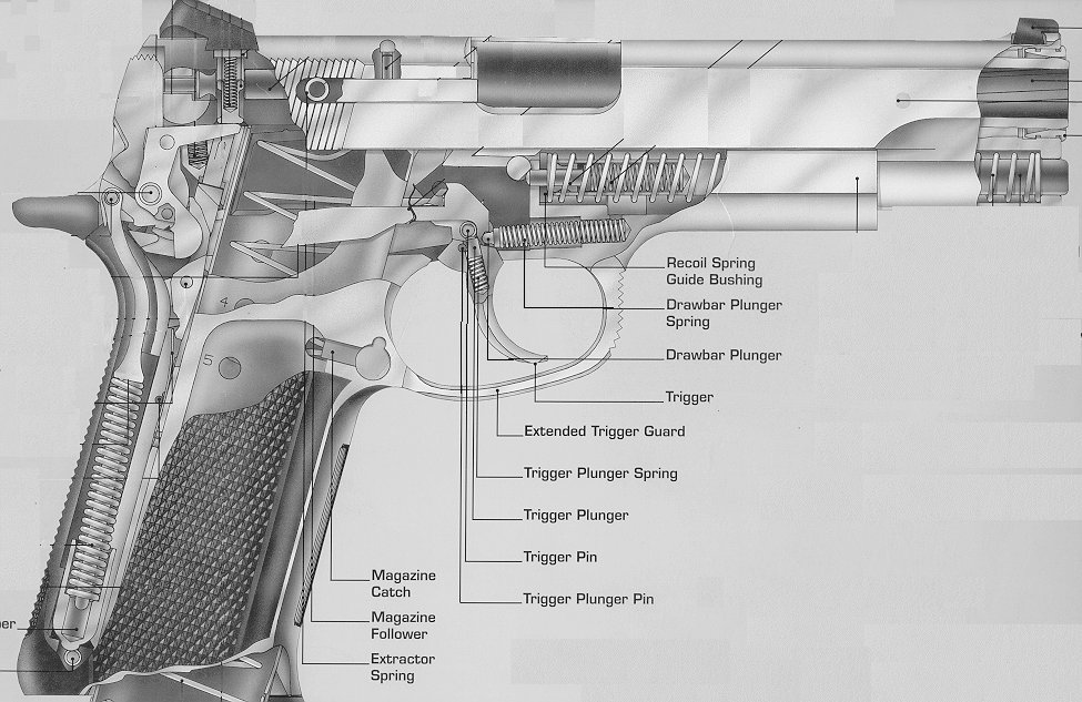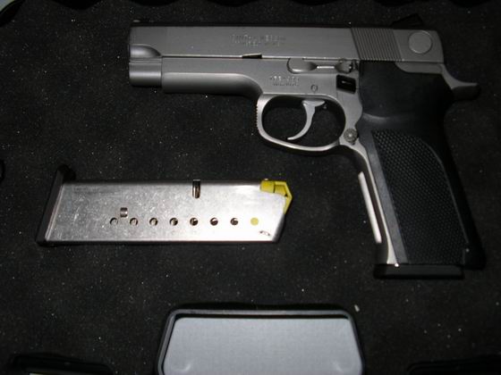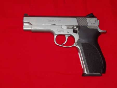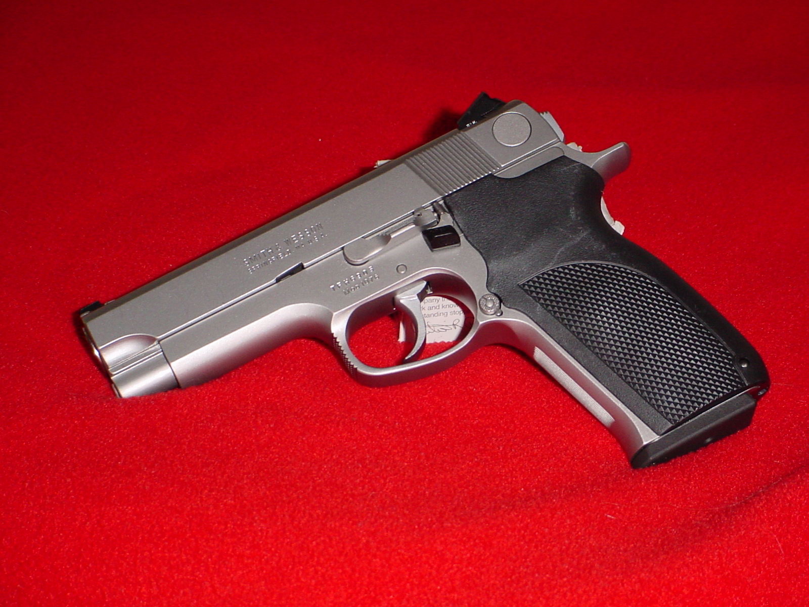 该枪采用从S&W 39型开始一直沿用的枪管短后坐式工作原理,勃朗宁式枪管偏移闭锁系统,该枪由不锈钢制成,弹匣也是不锈钢,标准的弹匣容量为9发,据说FBI还为其特工配备11发和15发的加长弹匣。瞄准具为柱形准星和缺口照门,准星和照门都可横向调整,且嵌有夜间瞄准用的氚光点。