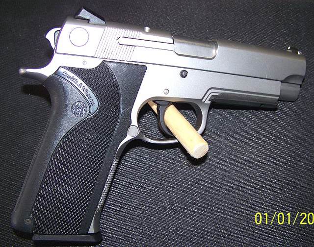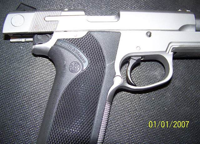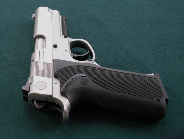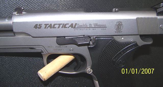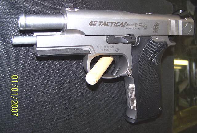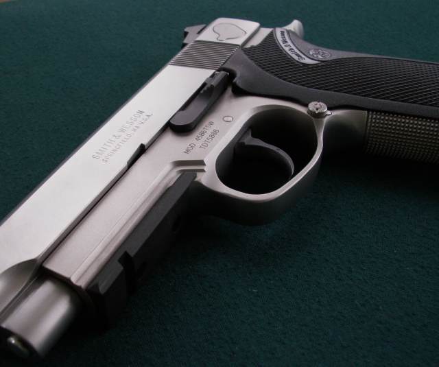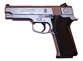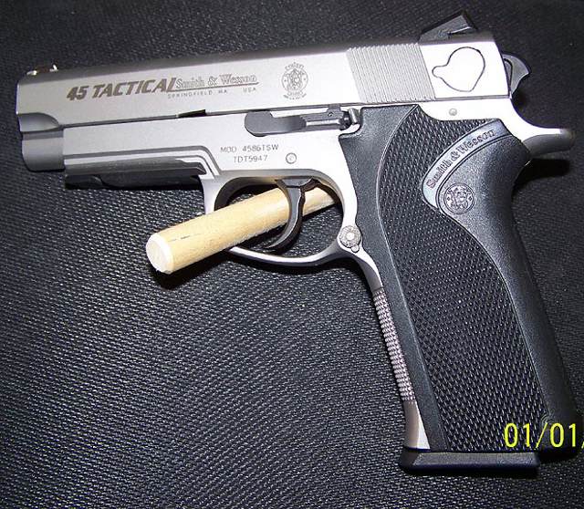 史密斯-韦森4586型手枪是不锈钢底把的4566型的DAO型。
