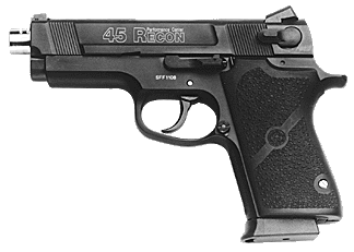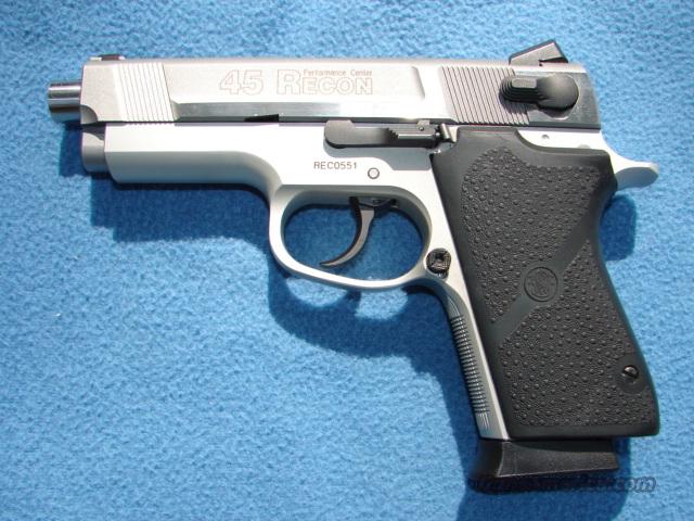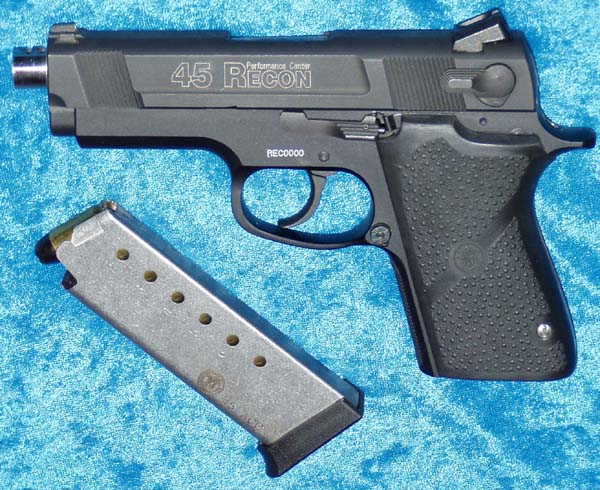 在1998年S&W执行中心推出了“侦察45”型自卫手枪(45 Recon),这种短小紧凑的比赛级枪管的自卫手枪是在“Shorty 45”的基础上把枪管延长到4.25英寸而成,在套筒前伸出的枪管段还开有向上的泄气孔,以减少射击时的枪口上跳。