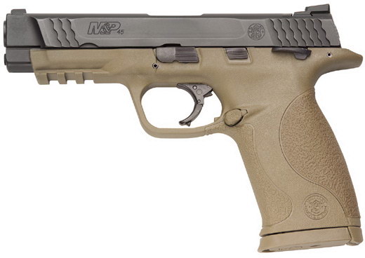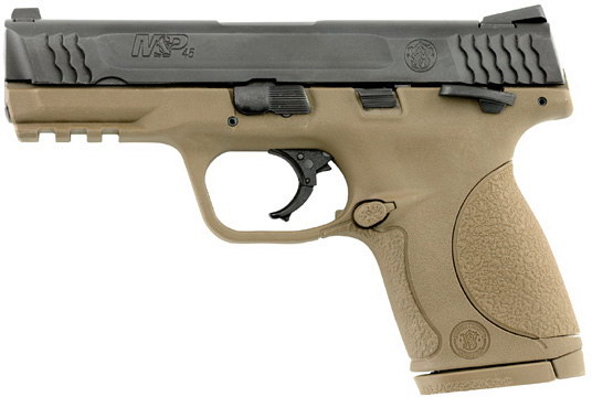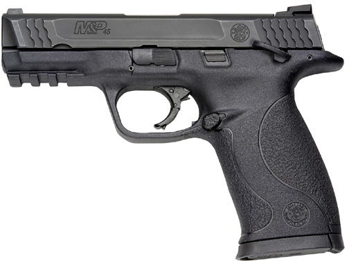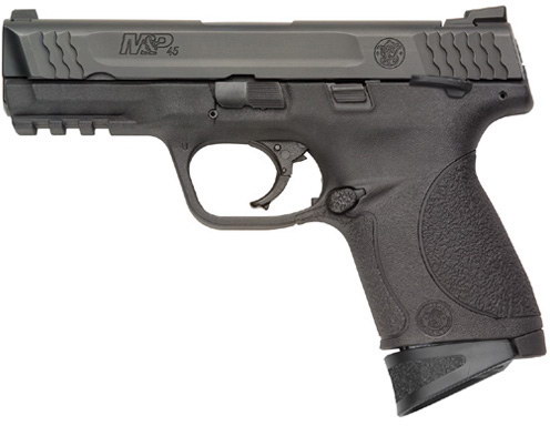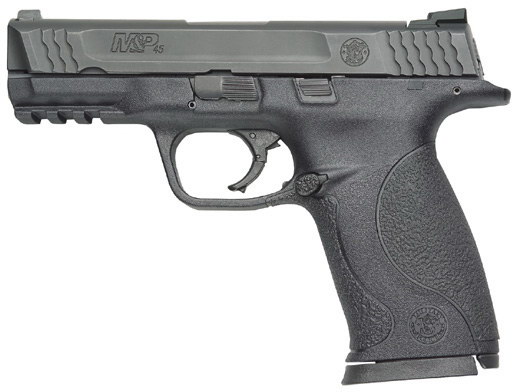 .45 ACP口径的M&P手枪在2007年推出,当时只有4.5英寸枪管的全尺寸型(Full Size),比其他口径的全尺寸型稍长。然后在2008年又推出了M&P45的中等尺寸型(Mid-Size)和紧凑型(Compact Size)。M&P45全尺寸型和中等尺寸型采用相同的底把,因此高度相同,也使用同样的10发双排弹匣,区别在于全尺寸型的枪管较长,因而套筒也较长。紧凑型的底把长度和前者相同,套筒及枪管也与中等尺寸型相同,只是握把的高度稍短,所以配用8发双排弹匣。但实际上10发弹匣是可以插到紧凑型上使用的,而且还有厂家为M&P45生产了14发的加长型弹匣。