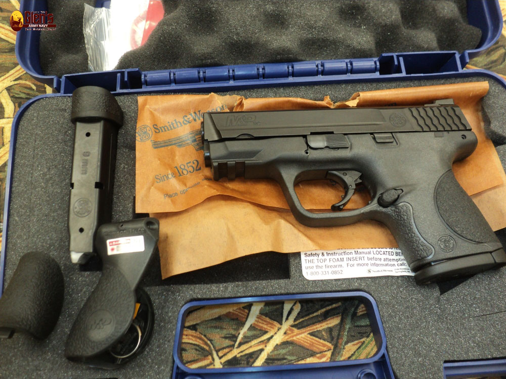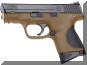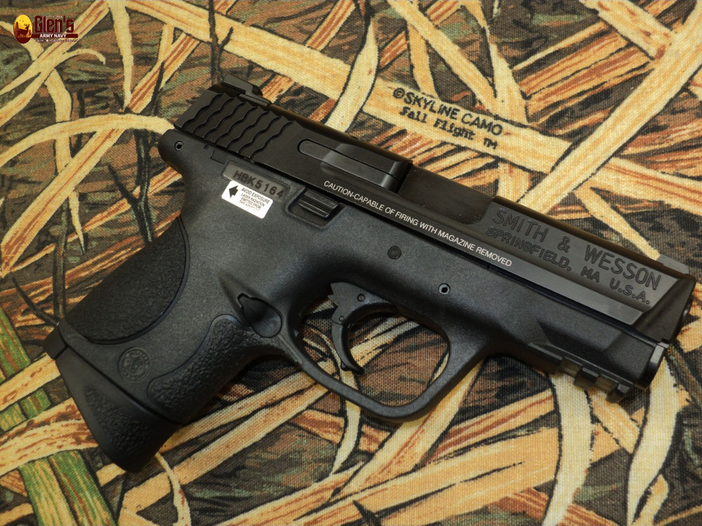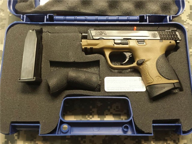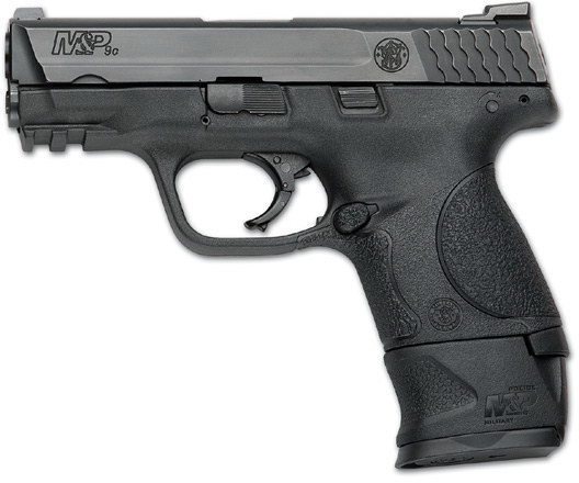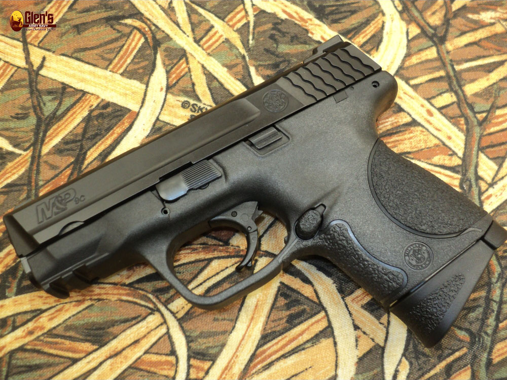M&Pc紧凑型(Compact Size)手枪有9mm和.40 S&W两种口径型,不过.40 S&W型可以通过更换枪管发射.357 SIG弹。由于握把较短,因此长度匹配的弹匣容量比标准型要少,9mm型匣容量为12发(另外有10发容量弹匣供加州或加拿大等限制),而.40口径型弹匣容量为10发。不过在给标准型的标准弹匣的底部套上一个称为XGRIP的塑料套后,就可以装到M&Pc紧凑型上使用,而且延长了握把的形状。