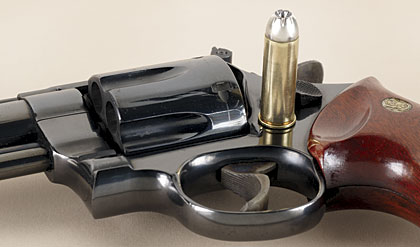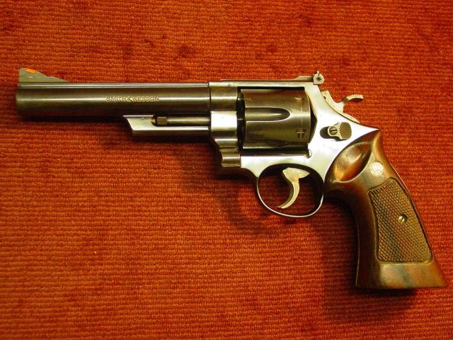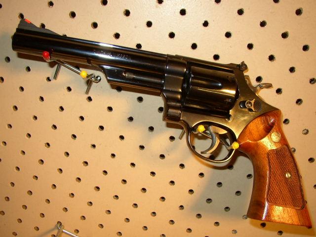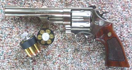 由于仅仅是弹壳长度不同,因此一支能发射.44马格南弹的转轮手枪或步枪都能使用.44 Special弹,而设计用于发射.44 Special弹的枪则不能使用.44马格南弹(就像.357马格南与.38 Special的关系一样)。在1955年1月,S&W公司把原本发射.44特种弹的1950型靶枪(1950 Target Model,在1956年后这种枪型被重新命名为Model 24)的弹膛改成.44马格南口径,并专门对转轮和底把进行热处理,经过改进后的1950型靶枪能承受新弹的膛压,但射手却不容易承受新弹的后坐力,因为这把转轮手枪太轻,所以发射.44马格南弹时后坐感太强,必须增加一些重量。于是转轮加长、枪管壁加厚,外形也改得更漂亮,就这样,在1955年12月中旬第一支6-1/2英寸枪管型的史密斯-韦森.44马格南转轮手枪开始生产了(当时正式枪名就叫“Smith & Wesson .44 Magnum”而矣)。