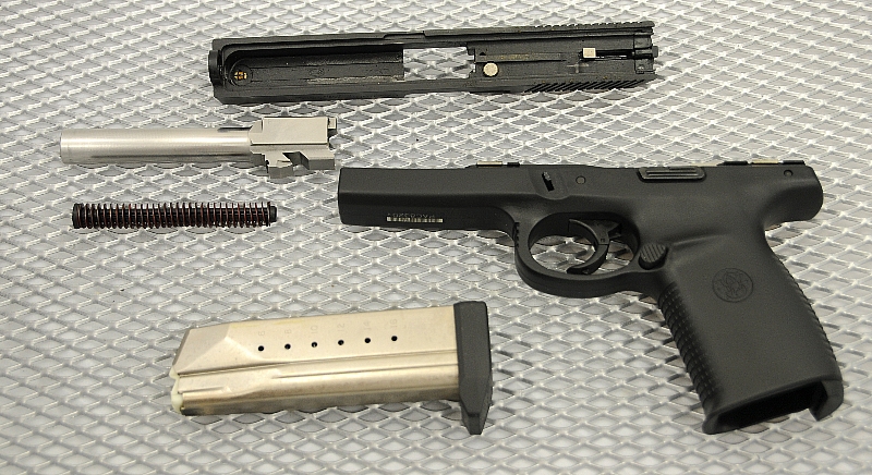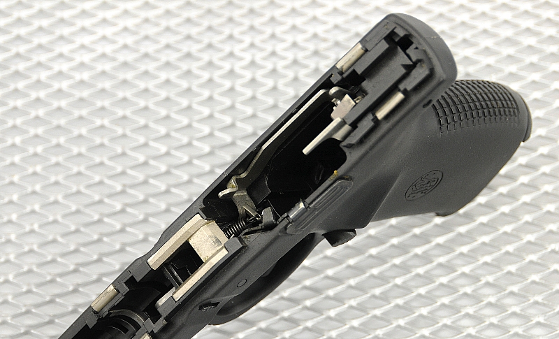 1999年后,S&W公司推出了SW40P和SW9P。P系列和VE系列基本是相同的,只是在枪管和套筒上增加了向上排气的防跳孔。