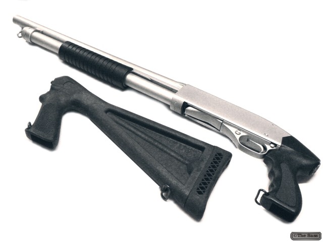 由店家更换了聚合物制手枪形握把、枪托及泵动手柄的所谓温彻斯特1200战术型