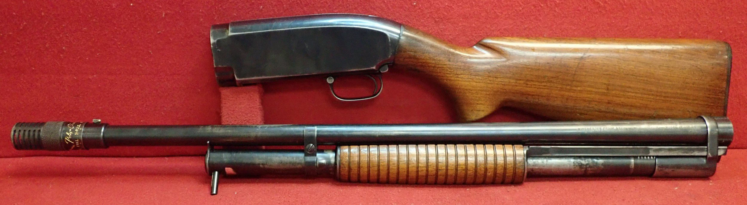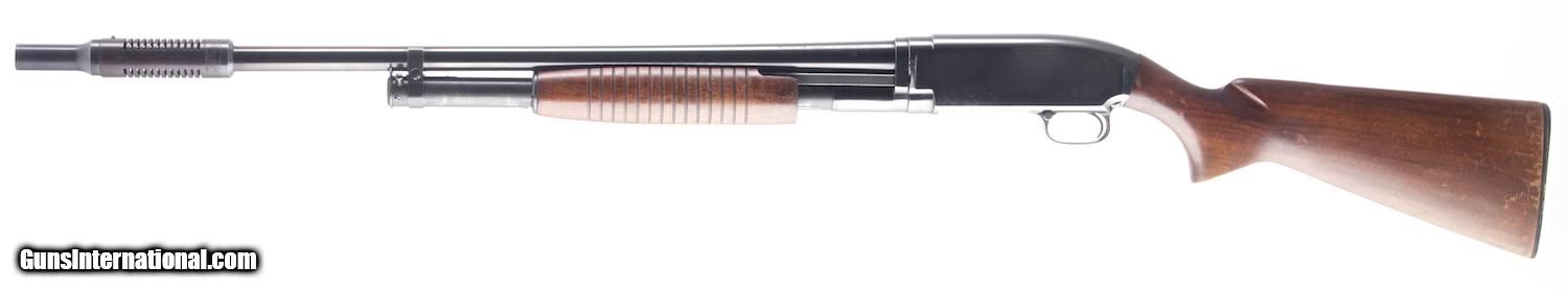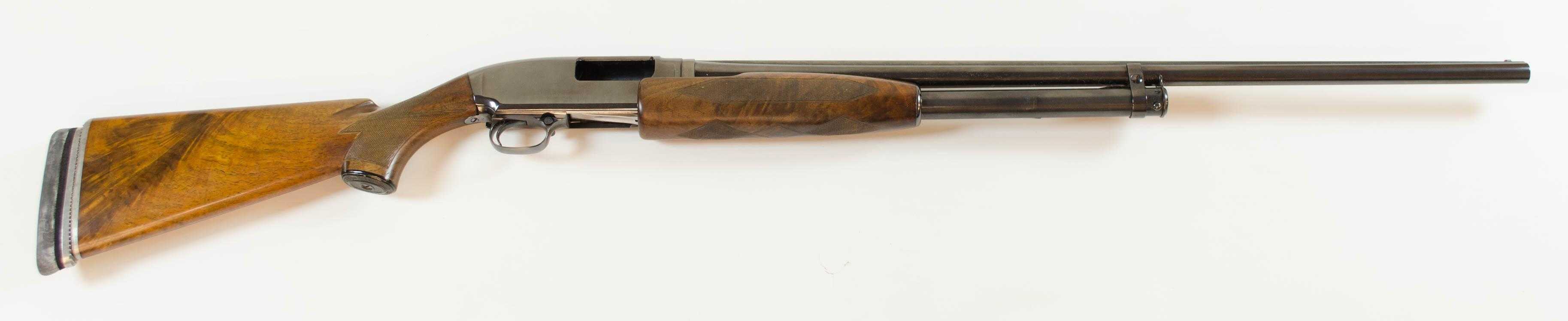 与有自己的独立工作室的勃朗宁不一样,托马斯·克罗斯利·约翰逊(Thomas Crossley Johnson)23岁起就已经在温彻斯特公司里工作,设计一种“无击锤”泵动霰弹枪的工作就交给了他。约翰逊沿用了温彻斯特1897型的基本思路,参考了史蒂文斯520型的设计,设计了一个由钢材锻造而成的后部封闭的流线型机匣,枪机和击锤都藏在机匣内运行,枪机也同样改为偏移式卡铁闭锁,闭锁卡铁向上进入机匣内的闭锁槽内进行闭锁,但在具体的结构设计上则回避了勃朗宁的专利。另外又增加了手动保险装置,但保险按钮不是像史蒂文斯520那样设置在扳机前方、扳机护圈内,而是设置在扳机护圈的前部,射手的手指自然伸直就能接触到。