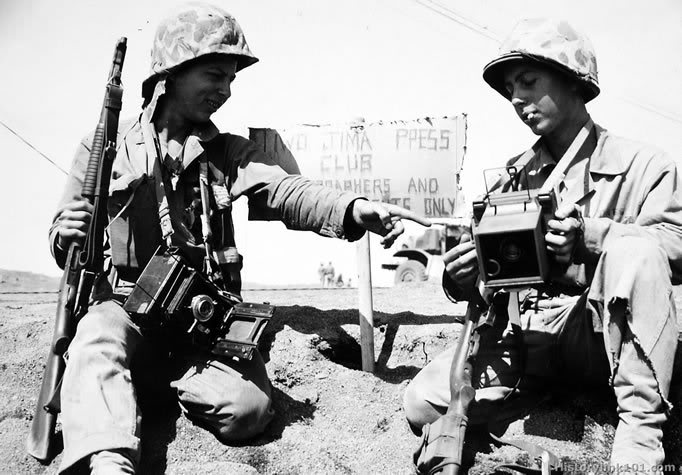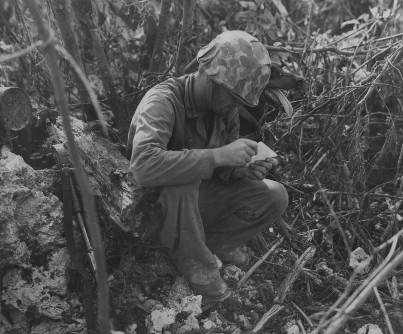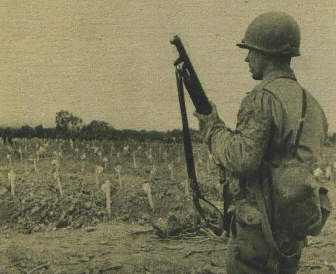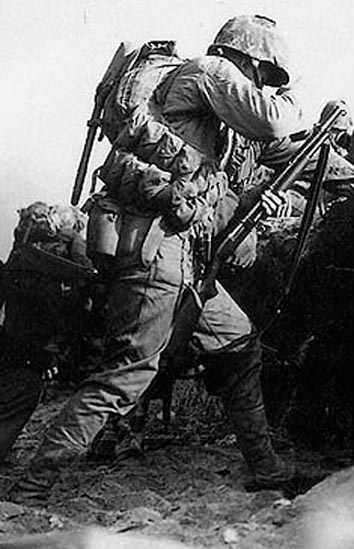 登陆冲绳岛时一名手持温彻斯特12型霰弹枪的美国海军陆战队员