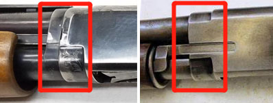 ![]() 有分拆功能的12型(左)和25型(右)在外观上的主要区别是机匣与枪管的连接部位 |