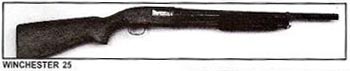温彻斯特公司在1949年推出过一种12型的廉价版,在外观上与12型差不多,但不具有快速分拆功能,这个型号被命名为25型。温彻斯特25型霰弹枪只有12号口径,枪管长有款26英寸或28英寸两种,至1954年停产为止,温彻斯特25型一共售出约8.8万支枪支。在越战时期,即使大战备仓库里重新启封了储存的各型霰弹枪,但丛林近战所需的霰弹枪依然短缺,所以美军又从温彻斯特公司订购了一些枪管长20英寸的25型霰弹枪,但总体数量不多。