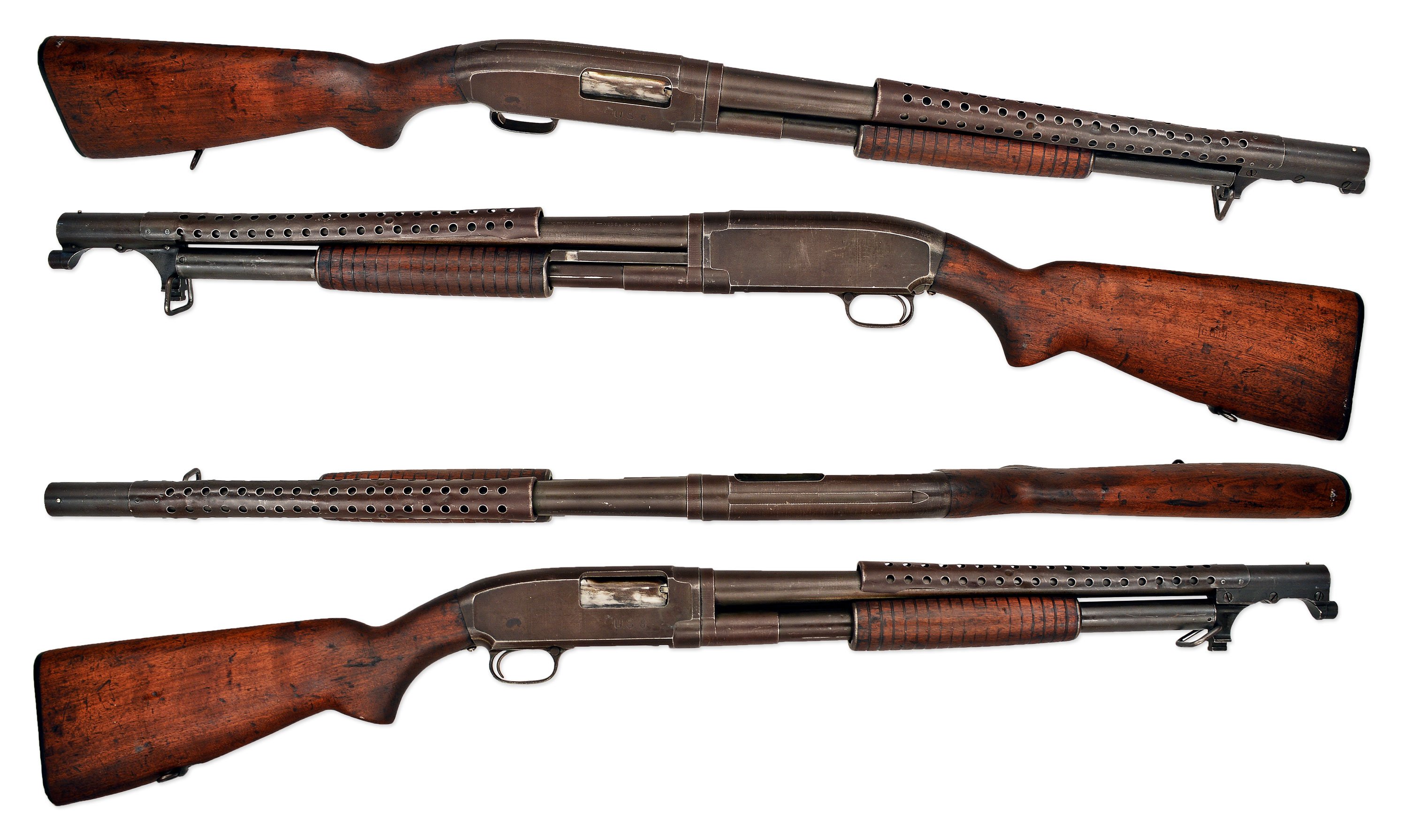 从1918年起,该公司还生产了两种战斗用的类别,即12型防暴枪(Model 12 riot gun)和12型堑壕枪(Model 12 trench gun)。堑壕枪进入美国陆军和海军陆战队服役,被军队正式定型为“M12霰弹枪”(M12 Shotgun)。而12型防暴枪则被美国多家执法机构广泛使用,军用的M12霰弹枪与温彻斯特1897型、史蒂文斯520/620等等好几种美军装备的堑壕枪一起在两次世界大战中服役。在第一次世界大战时,美军装备的堑壕枪大多是97型,而在第二次世界大战中,则更多的M12。在整个二战中,温彻斯特为美军提供了超过8万支M12,大多为堑壕枪,也有少量的防暴枪。二战结束后,仍然完好的M12和其他军用霰弹枪一起被封存在仓库里,然后在朝鲜战争和越南战争时又重新拿出来使用。M12防暴枪和堑壕枪都配备了20英寸的枪管,而M12堑壕枪的枪管周围还包裹有带散热孔的钢制隔热罩,在枪口下方有刺刀卡笋,可安装M1917式刺刀,所有的金属部件表面都经过磷化处理。